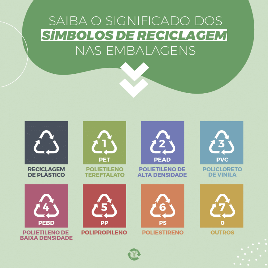 Aproveite para estudar com seus educandos os códigos utilizados para a separação dos plásticos após o uso. Esses códigos identificam qual tipo de polímero foi usado na fabricação do produto, pois os plásticos não podem ser reciclados do mesmo modo, e os códigos facilitam a separação adequada.