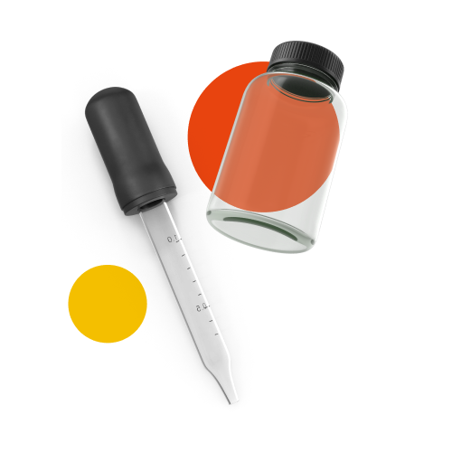 8 frascos, onde serão colocados os diferentes sabores; desses oito frascos, 4 deverão ter a tampa preta e quatro a tampa branca, para poderem formar os pares de cada sabor.