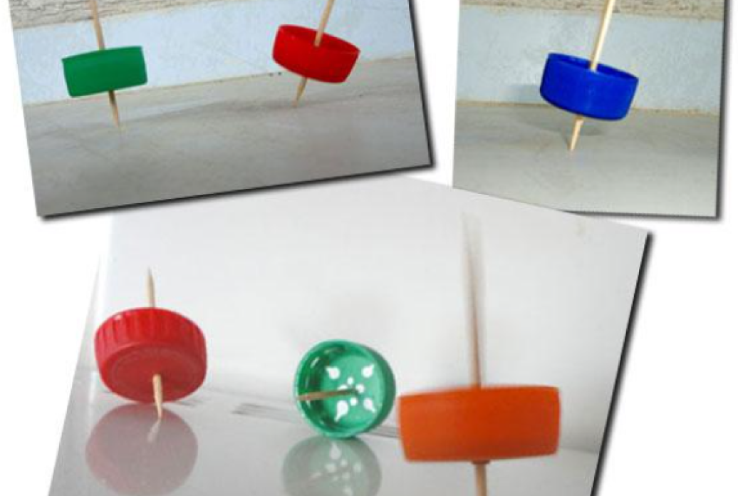 Explore os mecanismos dos brinquedos que giram. Pesquise com os educandos o que faz o pião girar, por exemplo.