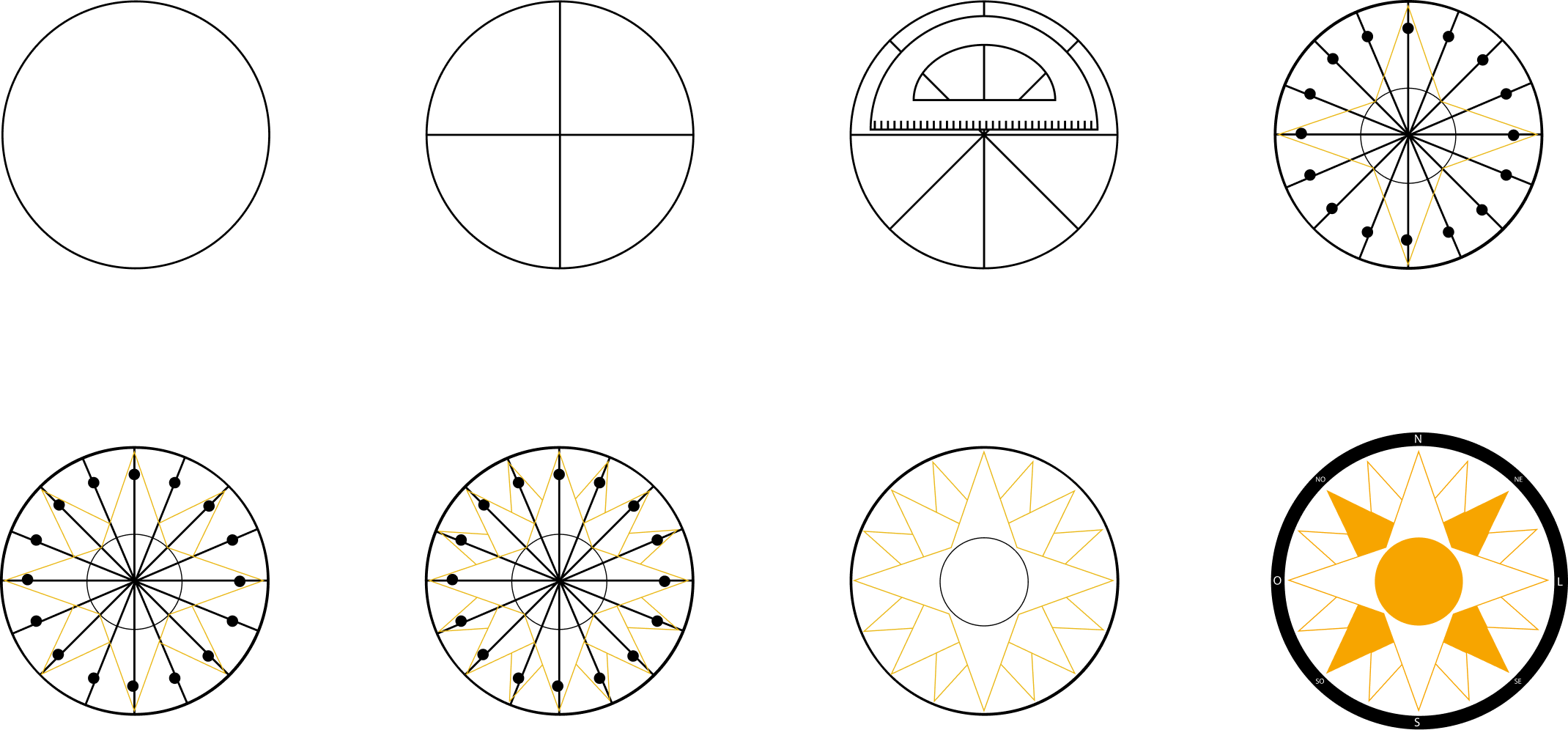 Proponha desenhar e pintar a rosa dos ventos com seus educandos. E caso queira propor em seguida uma rosa dos ventos nonsense, deixe acontecer!