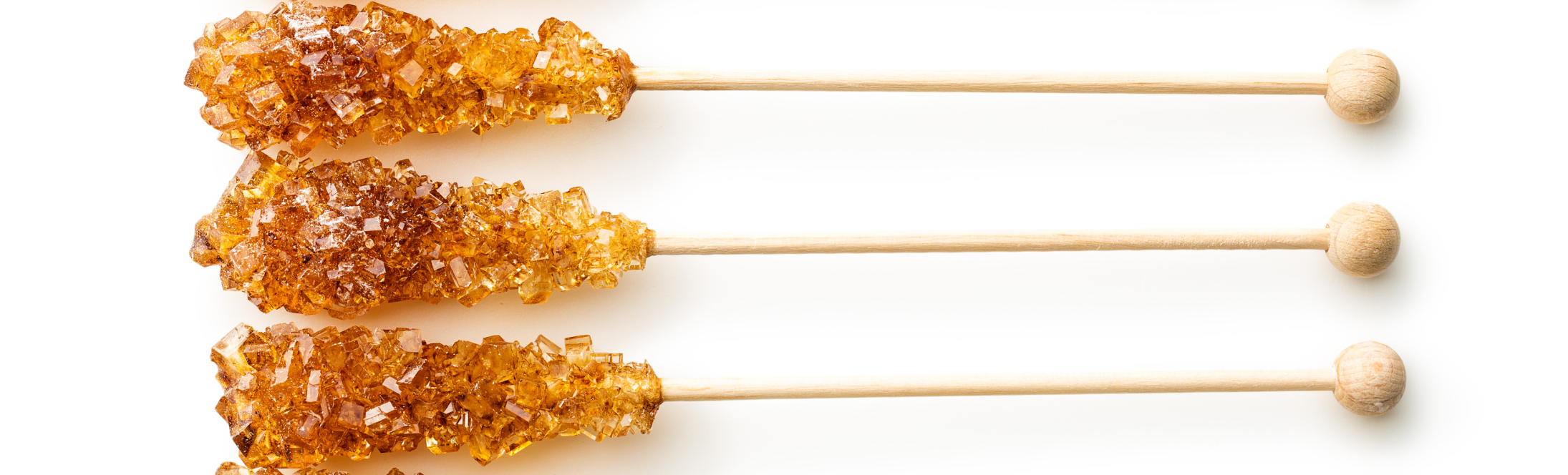 Esse excesso de material vai se depositando na forma de cristais sobre o palito que já possui os cristaizinhos de açúcar. Os formatos dos macrocristais observados são resultados das moléculas do açúcar (sacarose C12H22O11) que se organizam em um padrão tridimensional definido, e que se repete continuamente, criando uma estrutura cristalina que podemos ver como sólidos com formatos geométricos específicos, neste caso, o formato monoclínico.