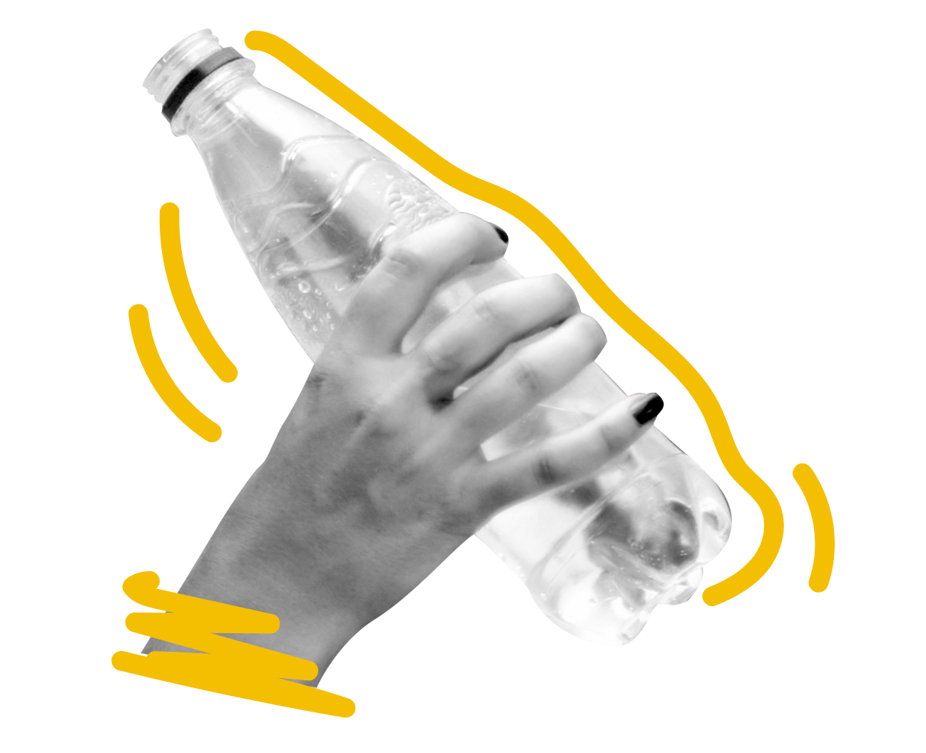 Na parte de cima da garrafa, coloque o algodão, depois a areia e, por último, as pedras.