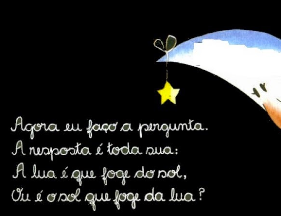 Nesse momento fica tudo escuro, o céu fica cheio de estrelas, as crianças dormem.